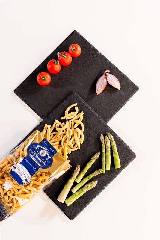 Un condimento fresco e leggero, perfetto per esaltare i sapori primaverili: asparagi e pomodorini frullati si trasformano in un pesto aromatico e vivace. La breve cottura degli asparagi preserva la loro consistenza croccante e il colore brillante, mentre i pomodorini, una volta passati, regalano una salsa liscia e vellutata. Un piatto ideale per chi desidera un primo delicato ma ricco di gusto.
